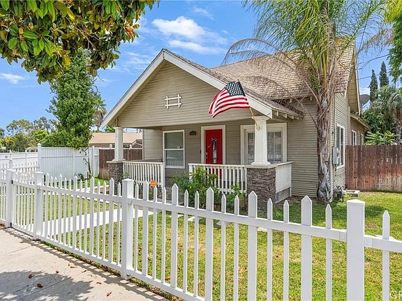 Craftsman Vintage style 3 bedroom home! Preserving much of its vintage character and detail in a modern setting. Fantastic kitchen with custom cabinets, quartz counter tops & stainless-steel appliances. Open layout, living room, dining room, kitchen, french doors, laminate flooring and recessed lighting throughout. Bathroom features, vanity, faucets, sink and fixtures. Central heating & air, there is also an inside laundry room. Front covered porch, side and back porches. Mosty new electrical and plumbing, new windows, doors, newer roof, etc. Landscaped front and back yards with automatic sprinkler system, large lot. Centrally located, quick access to 91, 60 & 215 Freeways.