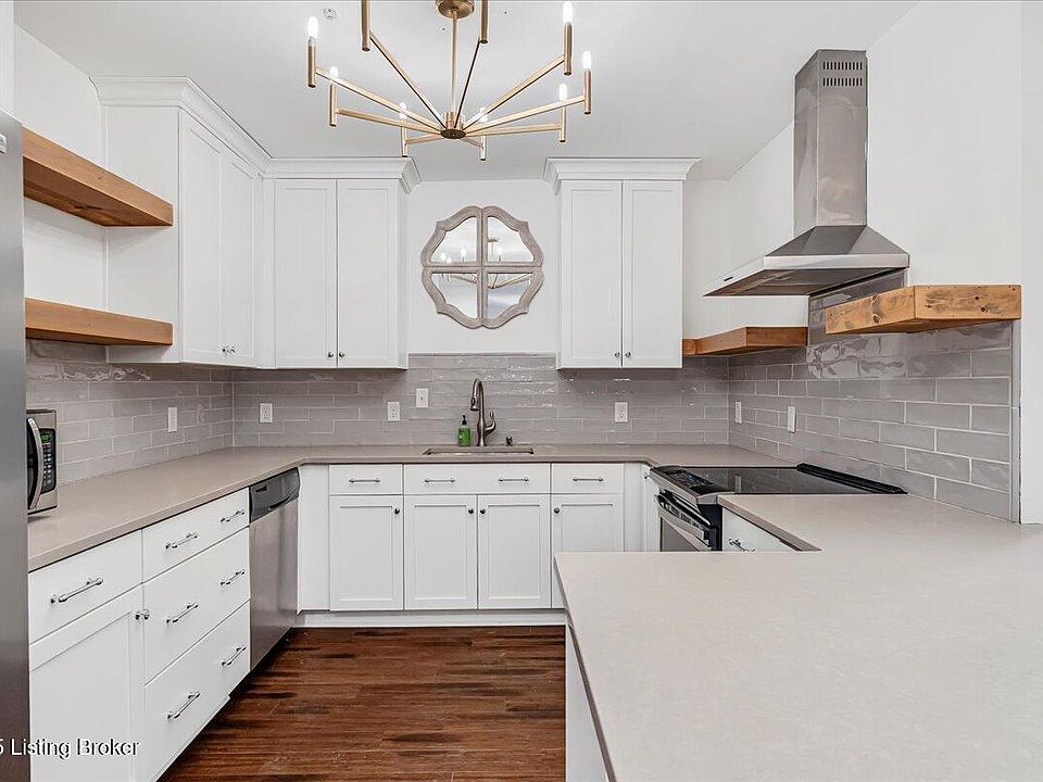 Beautifully remodeled condominium in Coach Gate. This second floor unit has been updated from top to bottom. The elegant kitchen has been opened and overlooks the living and dining area. New kitchen cabinets, quartz countertops, backsplash, fixtures and appliances. Enjoy cooking and entertaining on the large kitchen island. New paint and flooring throughout the entire condominium. Both bathrooms have been remodeled and contain new designer vanities, tile, fixtures. The primary en-suite has a walk-in shower and decorative tile. Enjoy beautiful views of the courtyard and community pool. Coach Gate is located in the heart of St. Matthews and is close to shops, parks, and expressways. The community is safe, fun and has wonderful amenities. This is a must see!