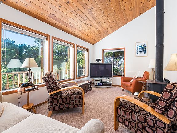 Retreat to the beach at this ocean view home just steps from the beach! Living area features vaulted tongue and groove wood ceiling and wood stove. Large wrap-around deck for outdoor living enjoyment and unwinding in the fresh ocean air and sounds of the surf. Deep single-car garage has a high ceiling with mezzanine for extra storage and a work bench area. Approximately a 5 minute drive to Pacific City.
