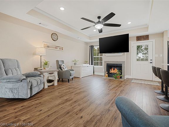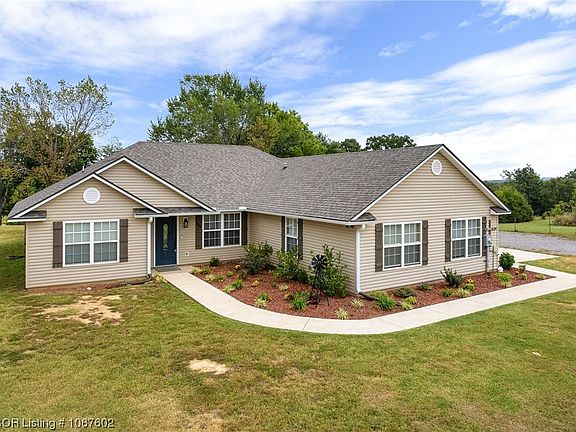 Leave the city life behind in minutes and come home to the country life with this gorgeous and immaculate-like new home sitting on a peaceful 1.15 acres of land with amazing views and lots of room for the kids and pets to safely run and play. You are going to love the open and airy floor plan with tall ceilings, recessed lighting, a gas fireplace, and nice hardwood floors. A huge peninsula with granite countertops and lots of bar seating overlooks the living room for easy entertaining. The mint-condition kitchen has black stainless appliances beautiful white cabinets, and tons of space to cook those family meals! A dining area with lots of space and a sitting area off the living room can fit even a larger table or would be the perfect space for your home office! The HUGE master suite with a tray ceiling and the AMAZING master bath with a gorgeous, tiled shower, double sink vanity, and soaking tub is the perfect retreat! A large walk-in closet in the master will make finding that perfect outfit in the morning a breeze. Split floor plan with two spacious bedrooms and a spotless hall bathroom with double sink vanity so it’s easier to get the kids ready for bed at night. Great storage and an excellent floor plan in this wonderful home! Outside is a fenced area perfect for small kids or pets, have a seat and breathe easily while you take in the scenic and panoramic nature views overlooking the pond and the coming Fall colors. 12 x 24 shop with lots of storage, roll-up door, and wired for electricity is the perfect spot for the mower or projects! Secluded feel and only 10 minutes to shopping and 20 minutes to Fort Smith! Don’t miss this one!