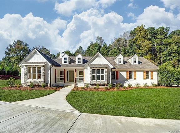 Beautiful white painted brick & stone 1 story home on large, private (.78) Acre wooded cul-de-sac lot in sought after Weddington! Ideal location within walking distance to Weddington Middle & High schools! Incredible park like setting buffering multiple acres of private & treed common area. Surrounded by high end custom homes sits this incredible find. Nice split bedroom one story floor plan w/vaulted Greatroom, wood burning fireplace, built ins, Large Master Suite w/walk in closet. Kitchen w/center island & new appliances. Over-sized Sunroom, large 2 + car attached garage. The interior has not yet been updated and is waiting for the new owner to add their custom touches. Incredible opportunity to gain some instant equity. This home is located in the NEW custom home community by Linnane Homes "Canisteo" selling from $855,000 to $1,100,000. This was the original home in the community and has hands down the most beautiful wooded & private setting in the neighborhood! HURRY ON THIS ONE!