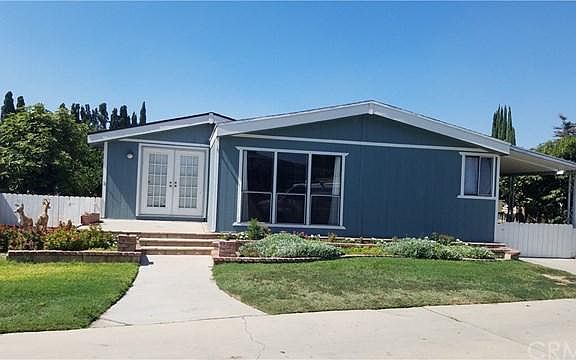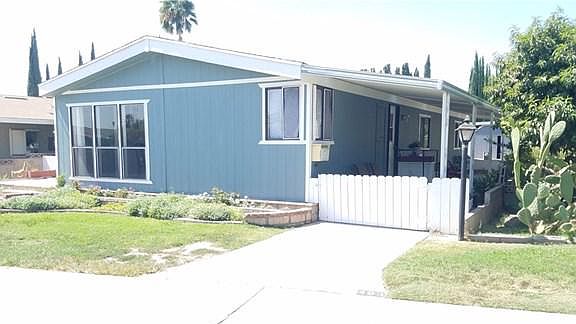 Mobile Home with great potential in the Beautiful city of Eastvale! This home has a bright living room with newer wood flooring, ceiling fan, newer paint, and Evaporative Cooling System. The Living Room is open to the dining and kitchen area. Some areas of the home have newer interior paint. Large Master Bedroom with wall air conditioning, ceiling fan, and newer paint. Master bathroom with bathtub. A second bathroom is at the hall, it has a newer vanity and newer flooring. The second bedroom needs some repairs. The third bedroom has newer flooring and ceiling fan. Laundry room is next to kitchen and has a door that leads to the side carport/porch. Property has two storage sheds on the back yard. There is another space on the south side of the house for your roses or trees. The property has two assigned parking spaces, you can lease another parking space with the Mobile Home Park office for another vehicle or RV. Newer roof.