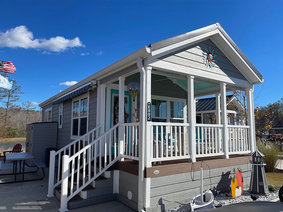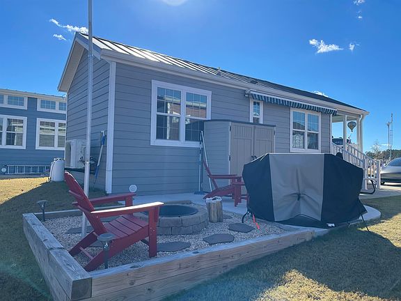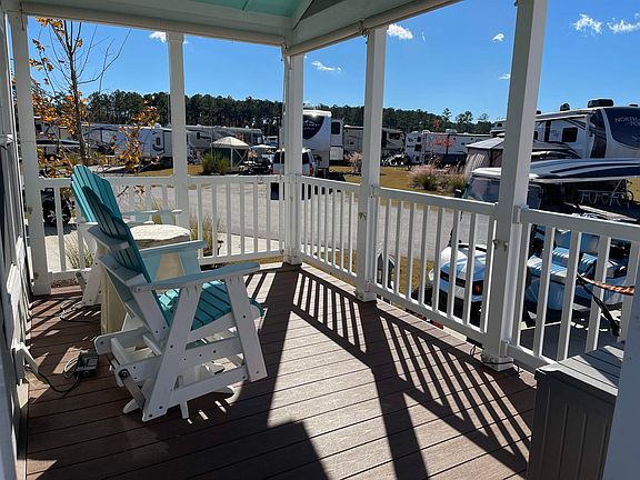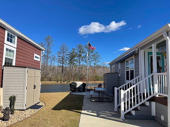Well you never see anything come available in this highly desired park! Carolina Pines RV Resort is the pinnacle of RV resorts! This place is loaded with amenities including water park, bowling alley, multiple swimming pools, mini golf, fitness center, pickleball courts, playgrounds, arcade, onsite dining and bar and more!! This park is located in a great location right off of one of the main highways, and not far from the beach! The home itself is only a couple years old and is ready for it's new owner. Sold almost completely how you see it, it's setup as the perfect beach cottage in an amazing community. Features one large bedroom, nice updated bathroom. Nice kitchen area with gas stove and spacious living area with vaulted ceiling. To top it off, there is a nice front porch as well as a patio to the side of the home overlooking the lake! Light up the firepit and grill some steaks, your new home awaits!! Don't wait around on this one!