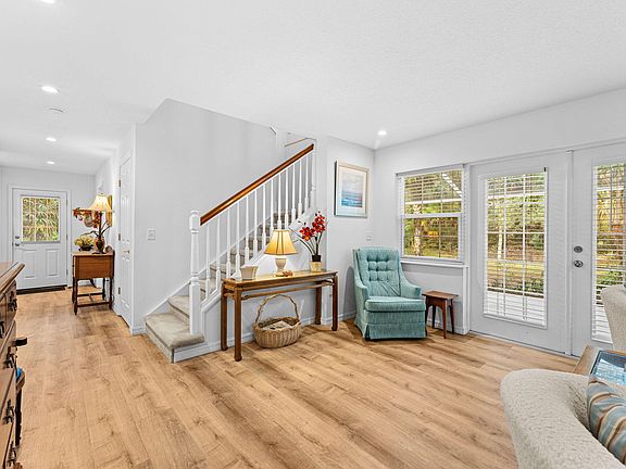 The British are selling! The British are selling! On an oversized wooded lot, the 2018 home exhibits 2 outdoor living areas, as tons of windows infuse generous, traditional spaces w/loads of natural light. LVP floors span the downstairs. A bright island kitchen showcases white cabinetry, SS appliances, a wine fridge, a walk-in pantry & natural wood shelves that enhance the English country look. Flowing into spacious dining, double glass doors open to a wrap-around screened porch overlooking a quaint courtyard & 3-tiered water fountain. The separate living rm displays a manteled niche for a television & 2 sets of glass French doors to both lanais. 1 downstairs bdrm & a shower bath w/a washer & dryer complete the 1st floor. The office offers access to the 2nd screened lanai. 2 sizable upstairs suites feature walk-in closets & tub/shower baths. These are comfortably private accommodations for the owners, family & special guest