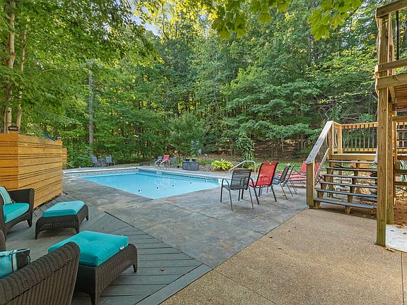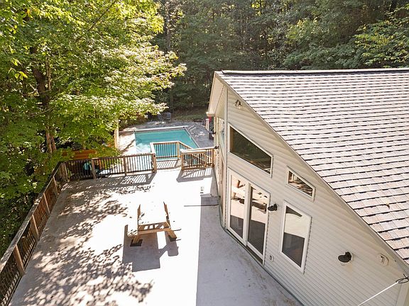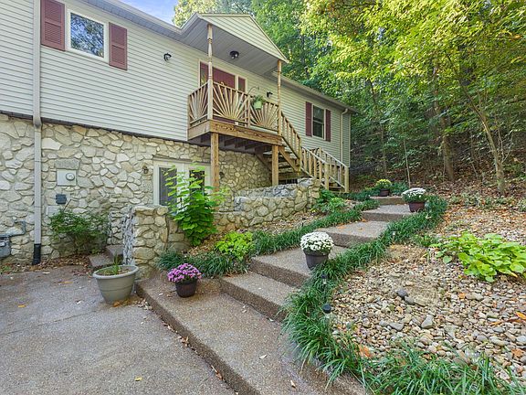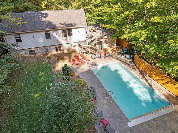 Welcome to this beautifully maintained 4 bedroom, 2.5 bathroom home, perfectly situated on 2.5 acres of Evansville’s desirable West Side. The secluded backyard oasis is complete with a refreshing saltwater pool, ideal for relaxing or entertaining. Upon entering, you’re welcomed by an open-concept kitchen and living area, flooded with natural light from the large windows and enhanced by vaulted ceilings. The updated kitchen features modern appliances, a breakfast bar, and an inviting flow into the living space. The spacious primary bedroom offers an ensuite bathroom for added comfort, while two additional bedrooms are located just steps from the half bath. A distinctive spiral staircase in the living room leads down to a cozy lower-level family room with a full kitchenette, perfect for extended family or guests. This level also includes a fourth bedroom with a large walk-in closet, a full bathroom, and a utility room with laundry hookups, plus an additional storage room. From the upper living room, step onto a spacious deck that overlooks the beautiful pool, shaded by mature trees, creating the perfect setting for gatherings or quiet afternoons. Additional highlights of this property include a 2.5-car attached garage, a pole barn, a carport, and ample parking space. Recent updates, including a new roof, luxury vinyl plank flooring, and updated kitchen appliances in 2018, as well as a newly resurfaced asphalt driveway in spring 2024, make this home move-in ready and perfect for its next owner.