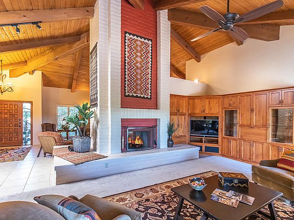 An enchanting gated courtyard leads to this home filled w/stunning features lending character & charm. Updated to provide comfort & luxury living. Main house (4 bed/3 bath @ 3060 sq ft) & Workshop/Studio (1 bed/1 bath @ 1014 sq ft). Dramatic vaulted, plank & beamed ceilings in living spaces, 2-sided fireplace in family/living rooms, walls of near new windows & glass doors plus numerous skylights throughout. Tons of beautiful wood cabinetry throughout. Granite, quartz, slate & mosaic tiles enhance the remodeled kitchen & all 3 bathrooms in main house. Large, private mstr suite enjoys its own fireplace, huge walk-in closet & spa-like bathroom. The grounds boast add'l dwelling, w/shop/hobby capabilities + additional 200 amp power & partial kitchen. Lrg rear yard w/basketball court +++