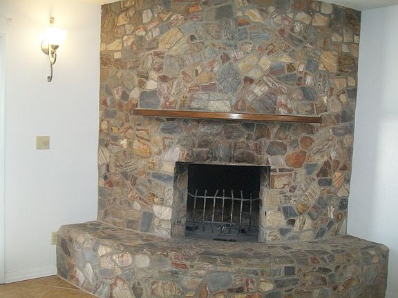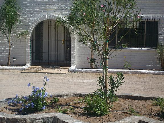 Outstanding Updated Vintage Home with great curb appeal and move-in ready. Spacious open floor plan with soothing interior palette, plush neutral carpet, upgraded lighting, gorgeous stone fireplace with gas log set, and Arcadia Doors to patio. Fantastic kitchen with granite counters, SS appliances, beautiful tile floor, breakfast bar, and white wood cabinetry with hardware. Great gathering place for family and friends. Upscale en suite in master retreat with granite counters, glass block shower, Jacuzzi tub, designer mirrors, and tile. Peaceful & serene backyard offers covered patio, lush green grass, view fence of common area, and endless blue skies. A must see ''gem'' in the desert.