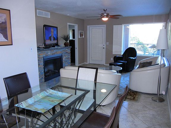 RESORT LIVING next to Ventana Canyon Lodge Golf & Country Club.First floor 2 bedroom condo with SPECTACULAR MT. VIEWS from living room, master bedroom and patio.One of the best views in the project. Granite counters, tile flrs. walk-in showers. Upgraded/expanded kitchen, ceiling fans. Wildlife sightings right outside your patio door. Abundant birdlife viewing and a desert trail right off of the patio. Furnishings are offered as option.Large EXTENDED Patio and STORAGE AREA.PROJECT: Extensive mature landscaping, 3 pools, 2 heated; Fitness Ctr. Club House. Golf and tennis memberships are available at the adjacent Ventana Canyon Lodge and golf club. Assigned covered parking.Financing may be available.