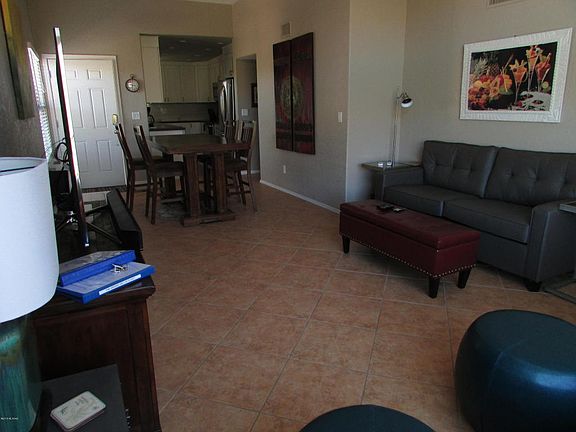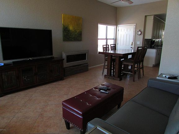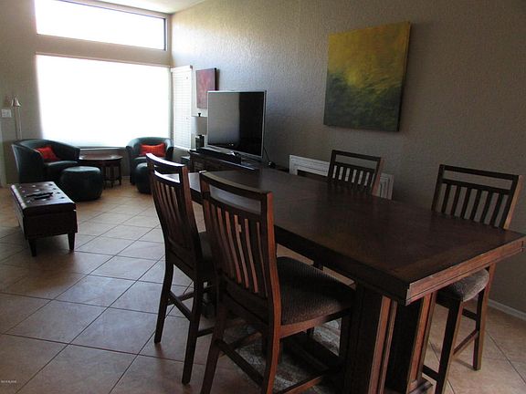 Located in an elevated area of the complex, this rare, end unit casita home offers unblocked, panoramic mountain and desert views from the expanded patio and almost all windows. This single story, 2 bedroom condo feels like a townhome with its high ceilings and lack of neighbors above. Access is easy because there are no exterior or interior stairs. Bedding is flexible. Each bedroom offers either extra-long, twin or king bed configurations. The master bath has a walk-in shower. The kitchen is larger than most other floor plans and includes a double oven. The unit is particularly well-equipped and organized to make your stay comfortable and easy. Direct TV service is in each bedroom and on the 60'' TV in the great room. Community has 3 pools, 2 jacuzzis, exercise room and community grill