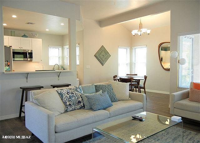 2nd Floor Magnificent Mountain View from all Windows. Condo is newly renovated with all wood floors, new kitchen, walk in shower and more! Condo sleeps up to 6 with ceiling fans in each bedrm. Each room highlights picture perfect Catalina Mountain Views! Condo is located on the upper end of the building making it very private to enjoy the balcony and the views of not only the Mountains but the Tucson desert and wildlife! RATE IS AVAILABLE UNTIL SEPT 20, 2020
