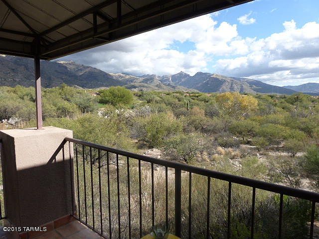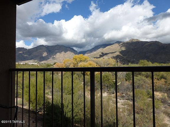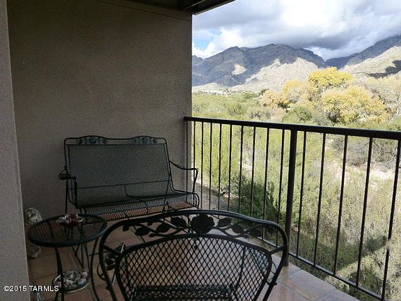 RESORT LIVING next to Ventana Canyon Lodge Golf & Country Club.Second floor 1 bedroom unit with a DEN/STUDY. Spectacular mountain views from living room, master bedroom and patio.One of the best views in the project. EXTENSIVE Upgrades - Granite counters, tile flrs throughout, upgraded appliances DP windows, ceiling fans, Mitsubishi whisper-quite/low energy AC. security system. Wine Cooler. and more. Wildlife sightings right off your balcony. Abundant birdlife viewing and and no one living behind you. Golf and tennis memberships are available at the adjacent Ventana Canyon Lodge and golf club. Balcony and STORAGE AREA.PROJECT: Extensive mature landscaping, 3 pools, 2 heated; Fitness Ctr. Club House. Assigned covered parking.Financing available.