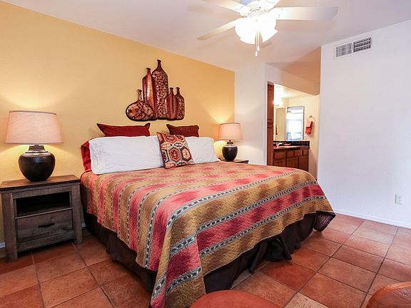 Resort style living in the Northeast side of Tucson. This is an immaculate first floor 2 bedroom 2 bathroom condo with beautiful southwestern decor. The community has 3 pools (2 are heated), a fitness center, and club house. This beautiful home is close to Sabino Canyon, Ventana resort, golf course, shopping, restaurants, hiking trails, biking paths, and more. Great for winter visitors or someone who just wants easy, care-free luxurious living.