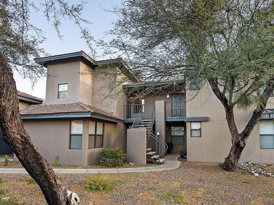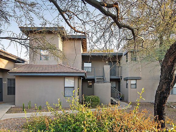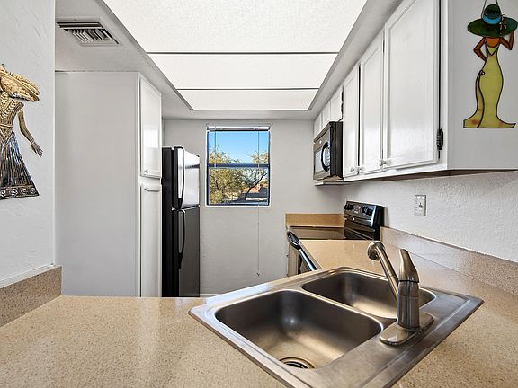 Beautiful 2 bedroom private condo in The Greens at Ventana Canyon. Over 800 square feet, with dark wood like floors, plush carpeting, and a warm fireplace in the great room. Kitchen includes updated counters, and all black appliances. Enjoy time on your private balcony, perfect for morning coffee! Borders the Ventana Golf and Racquet Club, plenty of hiking trails and upscale shopping. Pack your bags and move right in!