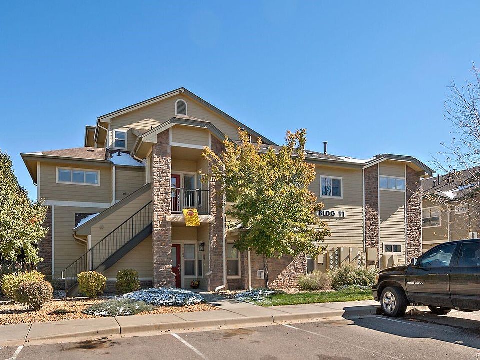 Absolutely stunning penthouse condo in the popular Wildhorse Ridge neighborhood. Enjoy resort style living in this amazing end unit home. Flooded with natural light through the large windows and features a soaring vaulted ceiling and much more. You will love the spacious open floor plan. The upgraded kitchen is amazing! Enjoy Maple cabinets, Corian Counters, Stainless Steel appliances and plenty of lighting. The dining area is perfectly situated off of the kitchen. The over-sized family room features a cozy gas fireplace and plenty of wall space for the largest T.V.'s. The master suite has a luxurious master bathroom with a large oval tub. The private second bedroom is perfectly located with easy access to the second full bathroom. This incredible home features a full-size washer & dryer, security system, and an over-sized 1 car garage. This amazing community features a clubhouse, pool and fitness. Conveniently located to Denver & DIA by RTD Train. Close to restaurants and shopping.