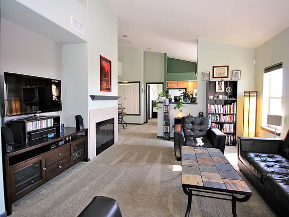Do not miss the well kept, move in ready Condo in Wildhorse Ridge with mountain views! Bright and airy with tall ceilings, soft pant, and natural light! Open concept living/dining/kitchen is ideal for entertaining! Spacious living room with a cozy gas fireplace. Open kitchen is complete with matching appliances, and plenty of cabinets and counter space! 2 bedrooms to include the master with private bathroom. Attached one car garage. Property is adjacent to open space! Do not miss this opportunity, schedule your showing today!