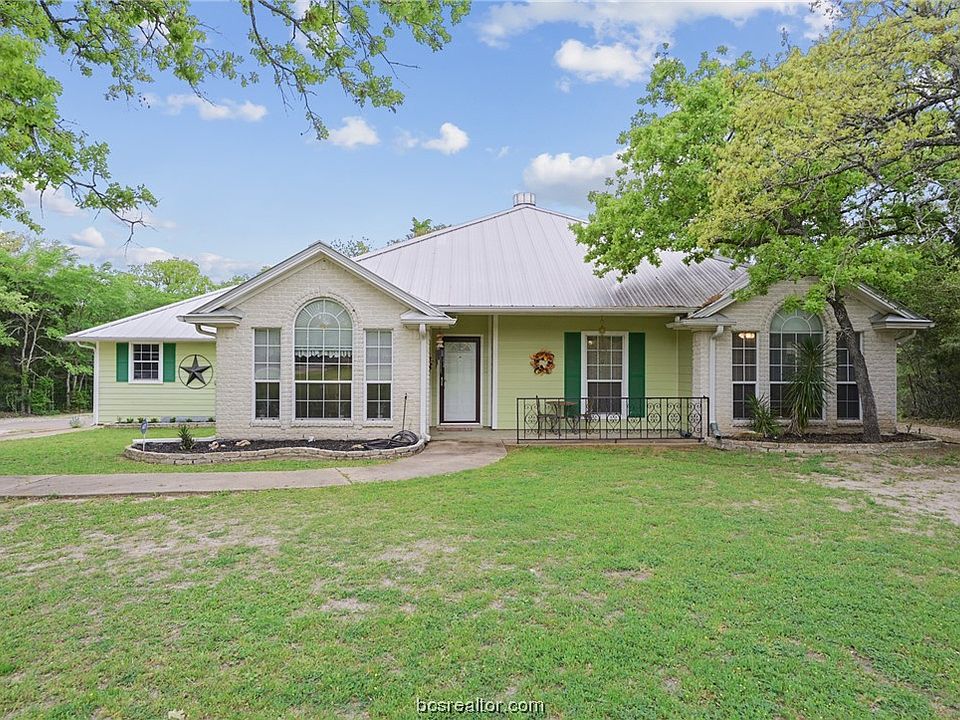 Are you searching for a serene country retreat located near town and within the College Station school district? This immaculately maintained three-bedroom, two-bathroom home is nestled among trees, offering ample privacy. The property also features a sizable workshop, multiple storage sheds, a covered parking area for a boat or tractor, and an outdoor kitchen. With its Hardie-type siding and recently installed metal roof, this home requires minimal upkeep. The generously proportioned kitchen accommodates multiple cooks while providing a welcoming space for socializing with others in the living room. Additionally, a convenient study/utility room provides flexible space options. Don't miss the exceptional opportunity!
