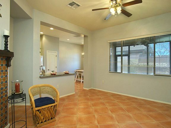 This home has it all, split bedroom floor plan plus a den, fireplace and open concept.. Updated kitchen with new self closing cabinets and granite counters! Large master has a door out and large walk in closet, perfect ensuite bath with dual sinks with granite counters. Tiled throughout with a screened Arizona room for outdoor comfort and ample back yard with pavers! Firepit on back patio. Just blocks to the Canoa Ranch GVR Rec centre for your fitness and recreation needs. Heated indoor pool and spa. Live the good life in Canoa Ranch!