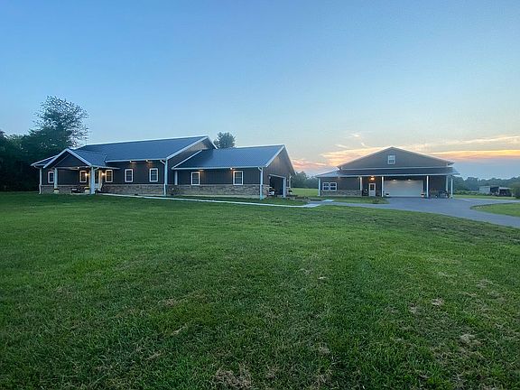 6.6 acres , 2400 sq foot Farmhouse home with metal and stone exterior! Granite/Marble throughout, tile showers, pantry, wood floors, mud room , storage room , office, 4 bedrooms, 3 full baths 2.5 attached garage. Barn 48x 80 , 3 garage doors, with 800 sq. Ft. apartment that has kitchen with appliances with granite countertop, , living room, area to sit and eat , full bathroom, bedroom, closet, laundry room washer and dryer . Paved driveway ! City water , septic system . Fenced in yard. Additional acres to build on !! Call for showing 317-797-5685