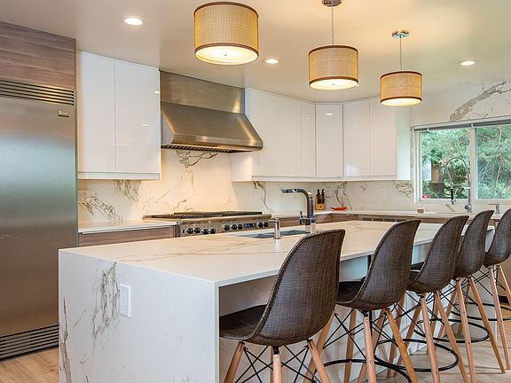 Stunning, updated midcentury modern. A multi-generational/entertainers dream! Designer kitchen w/sleek modern cabinetry, giant island, tons of storage, 60 refrigerator & American duel fuel dbl ovens, too much to list! Lower level completely remodeled w/home theater, wet bar, beautiful master suite w/walk-in closet, builtins & heated floors. Private backyard w/outdoor fire place, water feature, raised beds, green house, fenced &RV park