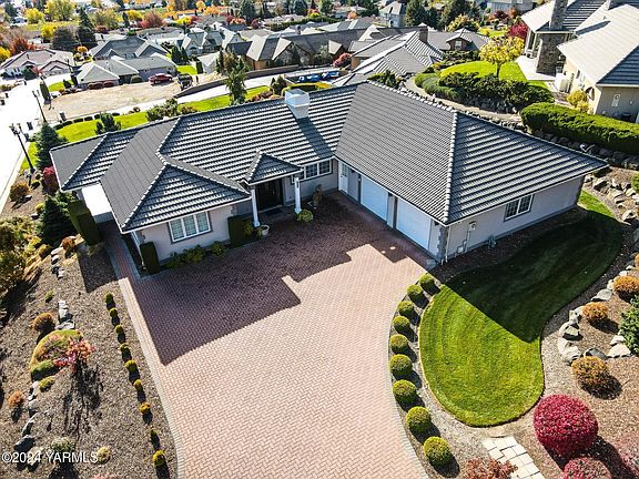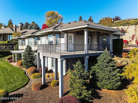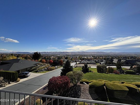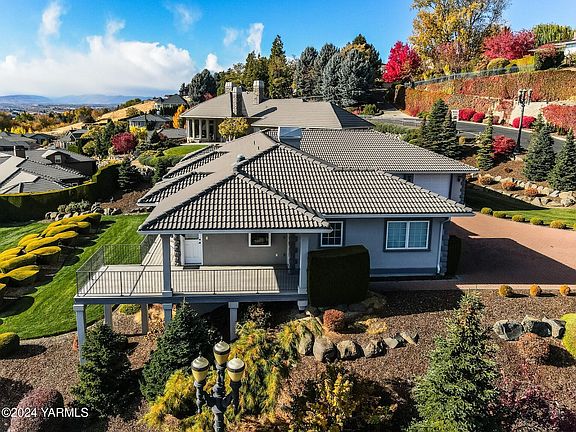 Luxury living with panoramic view's of Yakima in a Gated community. This, 4741 Sq.Ft,. 3 BD RM 2.5 Bath open concept home has it all and is, move in ready. Beveled front door and sidelights welcome you into the tiled entry. Main living area host mini bar, gas fireplace, entertainment built-ins, and open to beautifully kept kitchen w/tons of cabinetry, appliances and garden window. Lg. center island w/black granite tops, tiled backsplash and corian counter top finishes. Nook space and dining area open to main living and kitchen gives a nice flow for entertaining and deck access for outdoor enjoyment and seasonal views you'll never get tired of. Den w/built-in's and lighted tray ceiling (lighted tray ceilings throughout home) Utility room with tons of cabinetry, washer/dryer, counter space, built-ins, sink. Spacious half bath for guests. Primary bedroom and bath are lovely. Located on main level, large room w/ bayed out sitting area, luxury bath with Jacuzzi tub, walk in tiled shower, DBL sinks w/ tile and glass block finishes and lg. walk-in closet. Lower Level has another large living area w/gas fireplace, built-in desk and spacious patio area. Two large bedrooms w/walk-in closets and ''Jack and Jill bathroom''. There are three large multi purpose rooms, two located downstairs and one located in oversized two car garage and tons of storage throughout home. This home has so many amenities it is a must see in person but please refer to the amenity supplement.