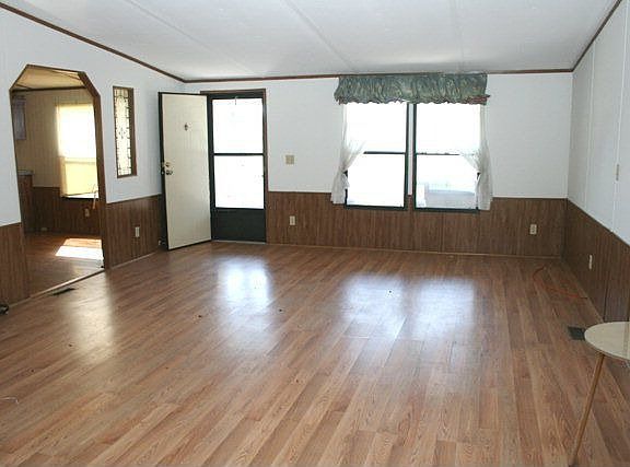1988 double wide situated on 1.13 acres. Spacious floor plan and lots of potential. Large garden tub in Master bathroom, covered porch with storm windows. Property needs TLC, but at this price there is plenty of room for making improvements. Property is owned by Bank, must have prequalification before submitting offer.