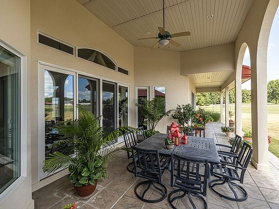 This eye-catching custom built home is situated on nearly 4 gated acres and is flooded with light and unique architectural details that are sure to impress! Both the builder and sellers spared no expense in construction and upgrades inside and out. The dramatic entryway has a 20ft ceiling and leads to formal dining, office/music room, and formal living area. Features include floor-to-ceiling tinted Anderson windows and exquisite light fixtures. Carpet and paint are just 3 years old. All bathrooms were remodeled in 2017 including top-of-the-line fixtures (w lifetime warranties), newly tiled showers, comfort height toilets, new lighting and mirrors, and gorgeous features like a full tile wall behind custom ceramic double sinks in the Jack and Jill bath. The glamorous master bath features a chandelier, walk-in shower, roomy tub, and countertops in a dazzling piece of quartz--the only piece like it available! The spacious master bedroom has a door leading out to the patio and two walk-in closets. No detail was missed in the remodeled (2017) kitchen that is open to a cozy hearth room. In addition to new granite and new gas cooktop, even the kitchen outlets were hidden under the cabinets as to not interrupt the flow of the new backsplash. Outside, the home sports a 2019 powder coated steel roof (with lifetime guarantee), new gutters, and new exterior paint. The backyard would make for an entertainment oasis with a vast stamped concrete patio, landscaping and tons of parking. For the lover of toys, in addition to a 3-car attached garage, there is a detached 1800sq ft 4-car garage with 1/2 bath and office, all with heat and air. The water heater is brand new, heating and cooling is zoned (new condensers and coils). Bonuses include storage, central vac, and intercom system. Refrigerator, washer and dryer stay, furniture and additional freezers available for purchase. Less than 10 min to Cox Health and 35 to Branson--spectacular country living and convenience all in one!