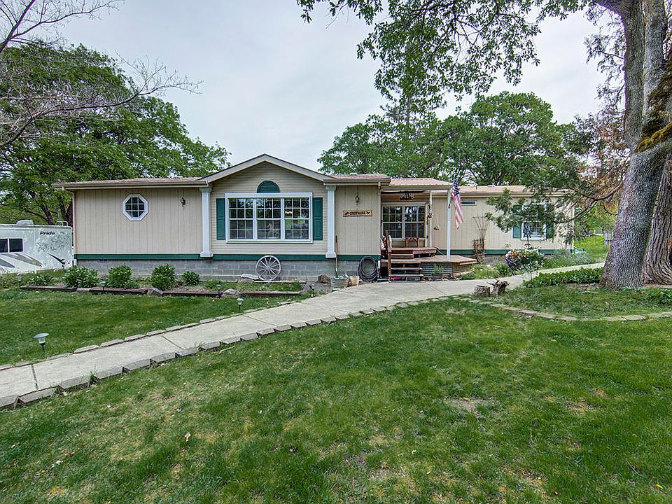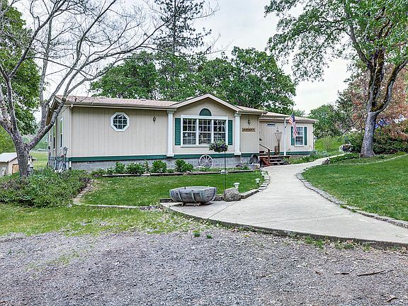 Spacious 2226 ft with a split floor plan on 3.34 acres! This 3 bedroom 2 bath home has vaulted ceilings with both family room and living room that separate the master bedroom from the additional 2 bedrooms giving privacy and an open feel to the home. Kitchen has two ovens and plenty of storage space with beautiful cabinets. Dining room off the kitchen with French doors heading out to a deck looking over rolling pastures and Koi pond. Indoor laundry/utility room with additional cabinets for storage. Large master bedroom with high ceilings and excellent master bath with tub and shower. Double sinks and vanity. Both additional bedrooms are good sized and have a hall bath between them, new flooring. The property has bee well cared for and is crossed fenced-perfect for animals! Beautiful home and property.
