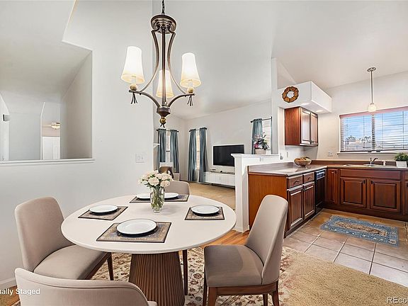 Step inside this well-maintained condo and you’ll immediately notice the dramatic vaulted ceilings that create a bright, open feel. The spacious floor plan flows easily from the living area to the dining and kitchen, making the space comfortable for both everyday living and entertaining.A cozy fireplace anchors the living room, while large windows bring in plenty of natural light throughout. The kitchen is well equipped with black appliances, ample cabinet storage, and generous countertop space. Just off the kitchen, the adjacent dining area offers room for casual meals or more formal dinners with friends. The primary bedroom features its own full bath, providing convenience and privacy, while neutral paint and a move-in ready condition make it easy to settle in and add your personal touch. Ideally located just minutes from Denver International Airport, the lightrail, and major highways including I-70 and 470, this condo makes travel quick and simple. Everyday essentials are close by, and residents enjoy access to community amenities through the HOA, including a pool, clubhouse, and available community parking. Perfect for those seeking comfort, accessibility, and a great location—don’t miss out on this move-in ready home!