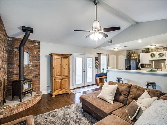 Completely updated, remodeled & move in ready open concept one story w 3 bedrooms & 2 baths. No carpet in whole house. Wood look floors, fresh grey paint, white cabinets, high ceilings, big center island, huge breakfast bar, all updated appliances, roof 2015, AC&heat 2016, H2O heater 2018, Home Warranty in place. Limited lifetime transferable warranty. Extra finished out building in backyard for office, spare bedroom, game room, media, crafts, playhouse. Oversized lot on a corner &cul de sac! Room for RV AND Boat parking on lot, 2 car rear entry garage. Park & LRG green space very close, school around corner. Lots of the furniture & appliances can stay if interested. The yard is gorgeous & front porch inviting.