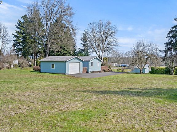 Triple wide on almost an acre with detached garage, two outbuildings, vaulted ceilings, range, dishwasher, refrigerator, island in kitchen, heat pump, new VOC vinyl flooring in hallway and family room. Room to roam inside and out!