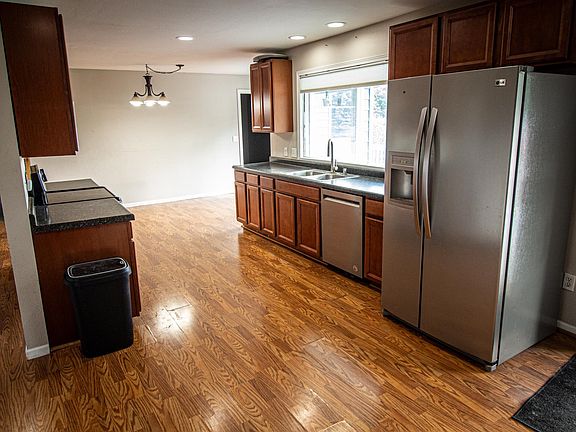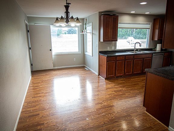This 3-bedroom, 2-bath residence offers the perfect blend of privacy and family-friendly features nestled on a 2-acre lot. The open floor plan connects the living room to the dining area and kitchen. Also on the main floor are two bedrooms, a full bath, and main floor laundry! Downstairs features a large living room, third bedroom, and the second full bathroom. There are also laundry hookups downstairs as well. The garage is a double stall attached garage with a fenced portion off the garage.