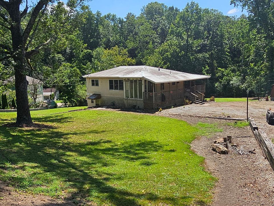 Main level consist of sunroom, living room, good size eat-in kitchen with pantry and corian countertops, two bedrooms and a full bath. Basement has a large bonus room that would be a great game room or media room and two more bonus rooms that have big closets and a full bath. Basement also has a door to front yard and a door to the back yard. Huge wrap around deck. Home also has a lot that is over an acre and a large workshop with power. This home is minutes from Fultondale schools and from Hwy 31 and I-65.