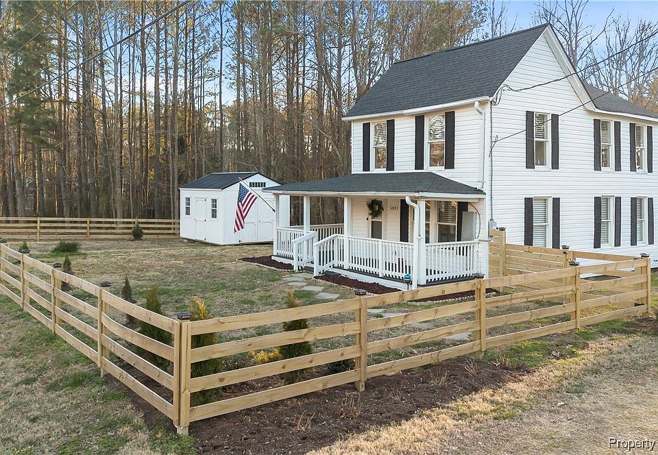 Charming vintage farmhouse on almost 2(!) acres in Williamsburg! Built in 1939, the old workmanship shines through in this thoughtfully updated home. Beautiful wood fence surrounds the large front yard, inviting wraparound porch for entertaining! New carpet and flooring throughout. Roof roughly 5 years old. Stainless appliances all convey, stove replaced in February. Huge lot is 100+ feet wide and goes nearly 1,000 feet back into the woods, so plenty of room for trails, treehouses, or whatever you can imagine! Make 5801 Centerville your first stop today!