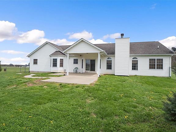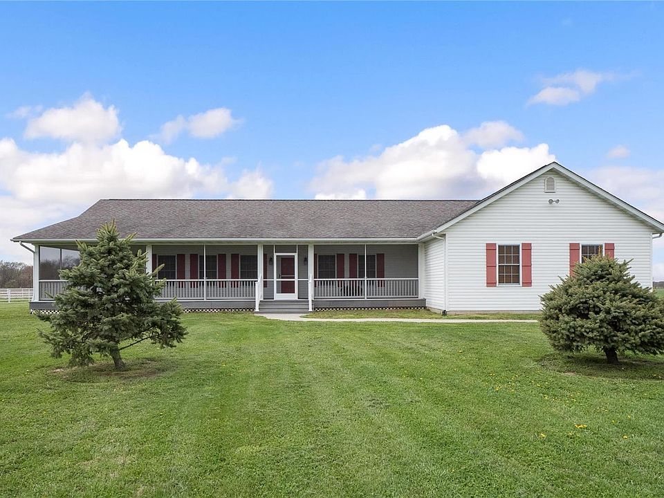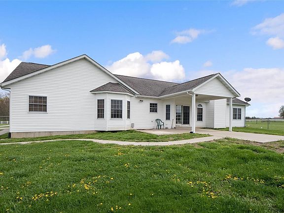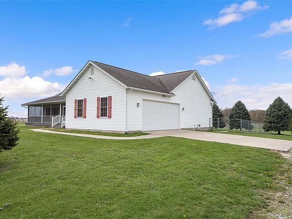 SADDLE UP & BRING YOUR HORSES! Waiting for you is this 3 BD, 2 BA, Ranch home built in 2004 offering 2,071 sq. ft. on 9.48 acres w/a 30x50 pole barn (built in 2002) just west of Waterloo! Entering in you will notice the open concept floor plan w/vaulted ceiling, archway entry into the formal dining room & office. Large living room w/stone fireplace & eat-in kitchen that has lots of cabinetry & counterspace, & SS appliances in 2015! Home features a split-bedroom concept w/large master suite w/bay window, his/her walk-in closets, master bath w/separate tub, walk-in shower w/dual shower heads & pedestal dual sinks. Many rooms updated in 2018 w/vinyl plank flooring! The basement has 9 ft ceiling and just waiting to be finished! Sitting outdoors in the screened-in porch will make evenings enjoyable, also a back patio & fenced back yard. Property includes 3 pastures, 4 stalls-one converts into a birthing room, water spigot, electric, white fencing & round pen riding area. Come See, Come Buy!