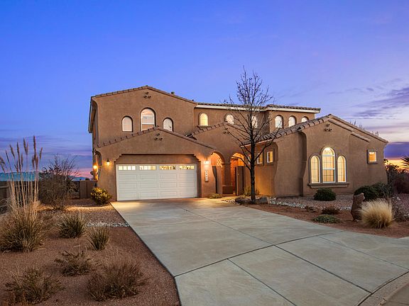 Incredible opportunity awaits a lucky buyer in Mariposa! Enjoy the ever-changing views of the Sandia Mountains, and the city lights from this elegantly appointed home backing on open space. Quality finishes such as variance plaster, high end appliances, furniture grade cabinetry, rich granite, intricate tile and wood floors, and elegant fixtures define this great home. Beautifully appointed backyard includes a water feature, fire pit and outdoor kitchen. No expense was spared in designing and building this home! Flexible floor plan offers 3 living areas, a detached casita, and 2 master suites in main house. Access to the community center featuring an indoor and outdoor pool and state of the art fitness facility is included in HOA Dues! Access miles of trails directly out your front door!