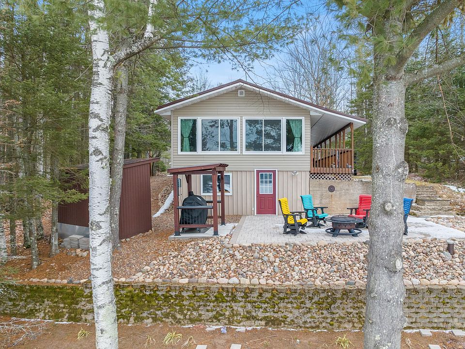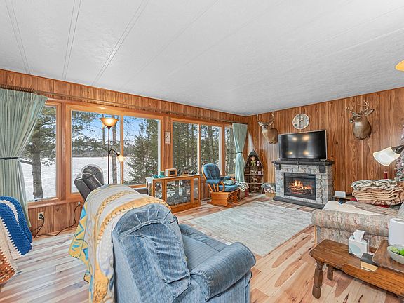 Get away from it all with this updated waterfont cabin on full-recreation Pier Lake. Perfect for waterskiing, pontooning, and fishing. New stainless appliances, fireplace, wood paneling, and laminate flooring. Desirable west-facing exposure with beautiful sunset views. 3-Bedroom exposed ranch with lake views from the kitchen, dining, living room, and lower level. Patio doors off living room to the huge covered deck/porch. Lower level with partially-finished family/rec room and walkout to the patio for grilling. Nice level space at the water's edge with retaining wall, fire pit, and pier. Oversized 2.5-car attached garage, detached garage/shed, and firewood lean-to. Low-maintenance vinyl exterior and metal roof on home and garages/shed. At the south end of Pier Lake is a 5-star rated bar and grill and a public boat landing with sandy swimming beach. Great area for ATVing and snowmobiling!
