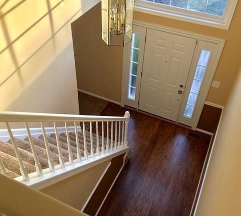 This picturesque colonial is a dream for any established or growing family! Situated in a quiet neighborhood on a corner lot, it boasts a brick front, two car garage, custom double-level deck and a fenced in yard that has two gates; one allowing walkable and instant access to the community center, playground, pool and neighborhood lake! Many improvements have been made to this stunning home! Externally, the upgrades include ALL BRAND NEW/CUSTOM DOORS AND DOUBLE-HUNG WINDOWS (comes w/ transferable LIFETIME WARRANTY), a roof that is less than 10 years old, crystal clear skylights and leaf-guard seamless gutter system! As you move inside, you are greeted by the foyer, hall, kitchen, breakfast sunroom and dining room which have brand new laminate hardwood flooring. The sunken den which has a wood burning fire place, formal living room and stairs are outfitted with plush padding and new carpet. The windows on both levels all have cordless custom blinds as well! Starting on the second level; the hallway and hall bath have the same hardwood laminate flooring and the bedroom carpets match the downstairs. The master bath is complete with a NEW tile floor and beautiful white alcove shower! No basement.