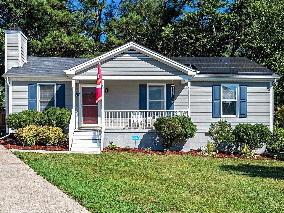 NEW INCENTIVE: Seller will pay $3000 towards buyer closing costs! Use for a rate buydown or other expenses. Adorable ranch in Riverbend at Iris Lake! Convenient to everything, yet a quiet escape with a large private wooded backyard. Easy one-level living and great natural light throughout. Three bedrooms and two full bathrooms. Storage closet and storage shed. Solar panels (current owners electric bill average is $30). Close to 540, 401, 1. Access to Neuse River Greenway