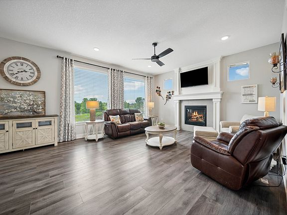 Why build when you can buy the epitome of modern living in this stunning, newly constructed R J Castle home? This 2022-built residence promises more than just luxury—it offers a lifestyle. With four bedrooms, three bathrooms, and quality upgrades built throughout, this home responds to the desires of discerning buyers seeking the ideal blend of comfort and style. Step through the upgraded entryway and 360 steel door to find an open-plan living space, anchored by a gas fireplace and punctuated with large windows that invite natural light to sweep across the luxury vinyl floors. Each detail has been thoughtfully chosen to impress, from the custom blinds to the stunning kitchen equipped with modern cabinets and a pantry, both with pull-out drawers. Quartz countertops, stainless steel appliances and a gas range add to the sophistication of the space. All surfaces throughout the home are solid and designed for both durability and aesthetic appeal. The main level master suite is a sanctuary, featuring decorative walls and large windows. The master bath is sure to impress with double sinks and quartz countertops. There is a spacious tiled walk-in shower with a built-in seating bench and dual showerheads, and a water closet. The large walk-in closet has built-ins and seasonal space racks. The laundry room is conveniently connected to the master bath. Entertainment and relaxation have a special place here. The basement is an entertainer's haven, boasting a wet bar with quartz countertops, view-out windows, and two spacious bedrooms. The basement bathroom doesn't skimp on luxury either, offering quartz countertops and a walk-in shower. The utility room has a custom storage system that will make storage a dream come true. Step outside to enjoy the screened-in back porch or the large patio, complete with a fire pit that stays with the home. The property also features a high-end alarm system, enhancing security and peace of mind. Sprinklers, irrigation well, and full rod-iron fence included. The three car garage has a garage door to the backyard and additional patio. The home's location in a highly desirable neighborhood ensures that you’re never far from excellent schools (Valley Center Schools) and community conveniences, while also offering tranquil water views.