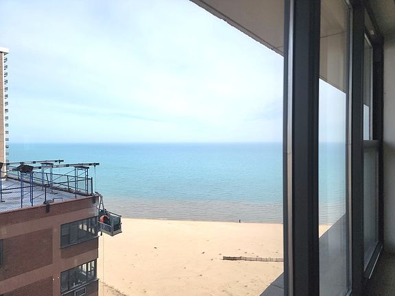 Edgewater LAKE VIEWS from this 15th floor home. Overlooking the beach with a north and east view, Spacious 2 bedroom, 2 bath condo. Plenty of cedar closets. Full amenity building and Assessments include heat and air conditioning, maintenance staff, common insurance. Great building with beach front patio, common laundry and bike path right at your door. Dogs and Cats allowed. Valet Monthly Parking available for $190 a month. Fee for storage lockers. Rentals are allowed up to 16 units and 13 are currently rented.
