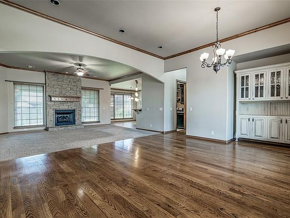NEW CARPET! Welcome to this well-established neighborhood with easy access to major city roads and highways, and within walking distance of the Metro library. Your future home is near many shops and nice eating places and is in a good public school district. This true 4 bed and 3 baths house welcomes you with tall ceilings, lots of natural light, and a cozy stacked stone fireplace. This house shows its quality throughout, from the real wood floor to the crown molding. All the bedrooms are very spacious. One bedroom is conveniently located by the entrance and could be used as an office, a guest room, or a room for your sweet MIL when she comes to visit. The main bedroom has a large bathroom with separate vanities, a jet tube, and an Australian wrap-around closet. The rest of the rooms are located on the opposite side to give you some privacy. The kitchen features granite countertops and a huge pantry with an abundance of storage. This house has many built-ins and a lot of storage space. You will enjoy spending time outside watching the Oklahoma sunsets on your covered back patio. Come and check it out ASAP!