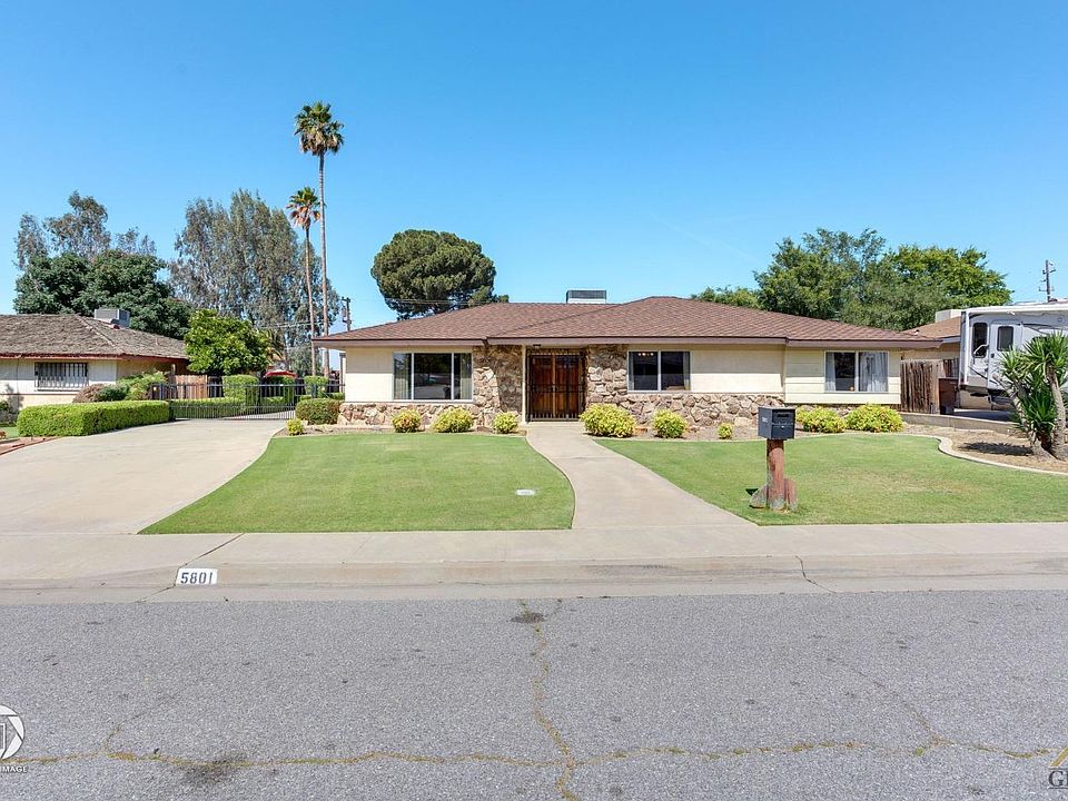 Olive Estates fabulous floor plan with a large Shop! The 70's may be calling for its decor back however this gem is clean, well maintained & move-in ready. If you don't love the style, you can move in & remodel without a rush. Once owned by a popular local musician, this home is still a knockout. A double door entry, grand foyer with glass & a step down formal living give a sparkling welcome to guests. Stroll into the great room where everyone can hang around the kitchen bar, sit by the fireplace and escape to the covered patio overlooking the backyard. The 3 bedroom 2 bath plan offers plenty of room for family & friends. The charming owner's suite offers lots of closet space and a unique en-suite featuring a pass through indoor utility with a private exterior door. Along w/a 2 car attached garage & RV parking, is your shop. Featuring a 2 door automatic opener, overhead compressors, air, built-ins and more, you will spend countless hours in here. Call now for a private showing!