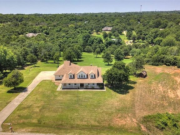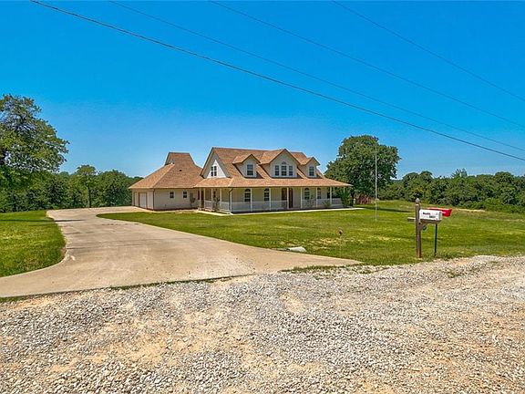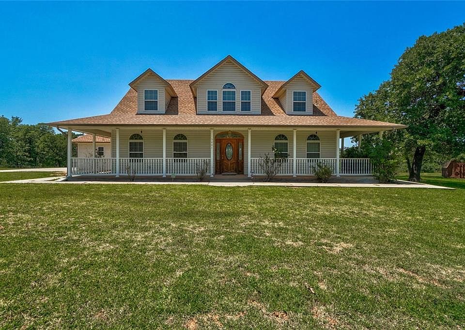 This gorgeous one-owner true 4 bedroom on 5 acres (mol) is a jaw-dropper both inside and out. Sit a spell on the wrap-around porch. Venture inside to be greeted by the vaulted ceiling in the living area and a stunning view overlooking the rolling back acreage which features park-like trees landscaped to draw the eye across the property. Formal dining leads into the beautiful kitchen with tons of storage. French doors lead to the back porch for easy entertaining. Over-sized laundry room and half-bath are accessible from the front porch and garage. Master suite with amazing closet and storage spaces easily accommodates a king bed, and french doors provide private access to the back porch. Three additional nice-sized bedrooms upstairs plus second full bath. Open balcony overlooking living area provides a fantastic view of the back acreage. Above ground safe room is accessible without stepping off the back porch. Storage seems at every corner! Buyer to verify all information.