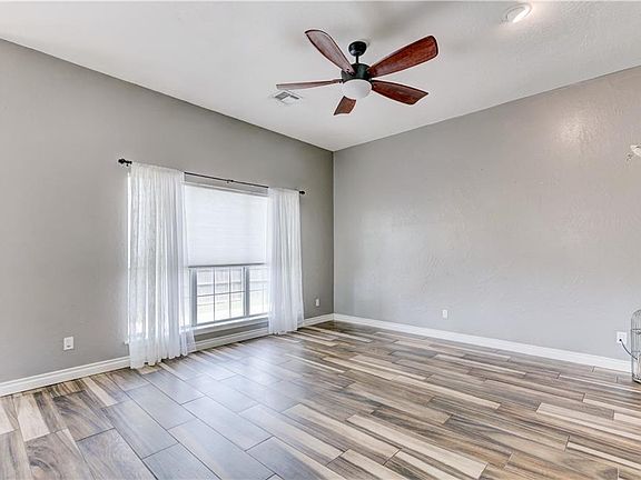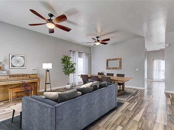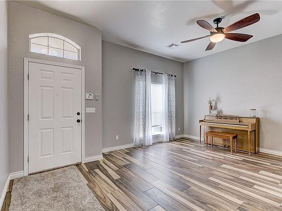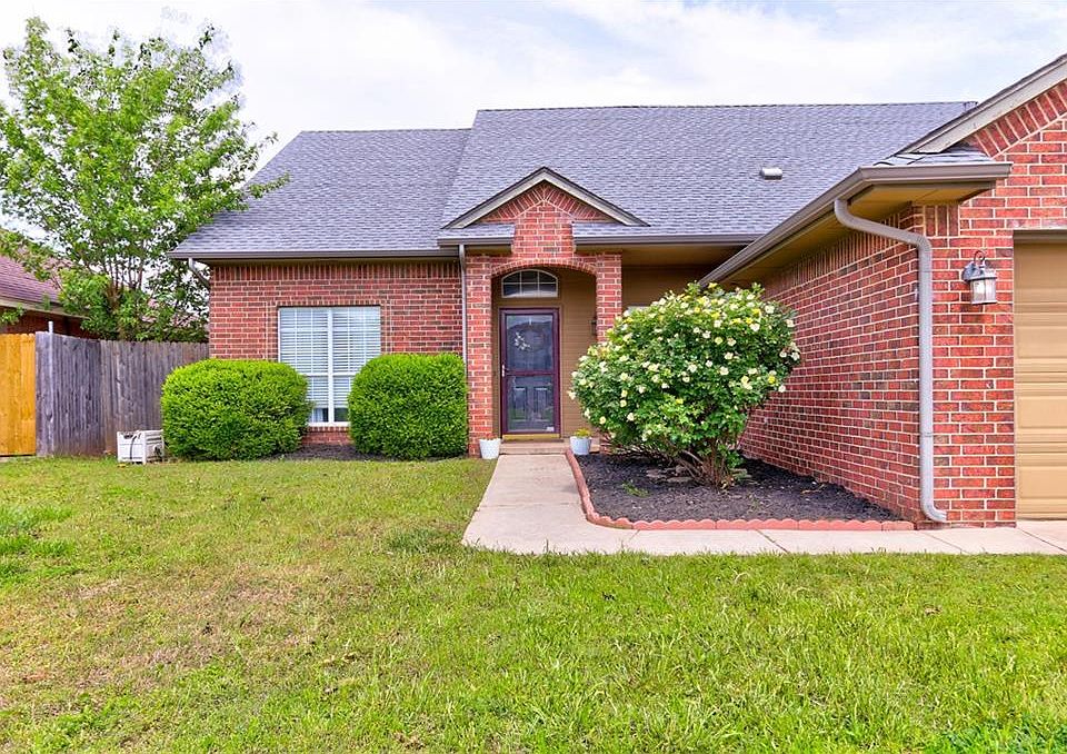 Great floor plan in Moore Schools! When you walk in the front door, there is a formal living area and a formal dining area, and then on to the back of the house is the kitchen, breakfast nook, and living room. The front of the house has so many options - instead of a formal living/dining combo, it could be one really large living area, a study/living combo, a pool table, really anything, just a great multifunction space. The open concept kitchen/living area over looks an extended patio - plenty of room for a patio set and a fire pit. There is a storage building around the side of the house as well. The master bathroom has a separate shower and a soaker tub, two sinks, and also a large walk-in closet. The bedroom itself has a great nook at one end that would work perfectly for a desk or a little sitting area for reading or studying. Large underground storm shelter in the garage. Very accessible to I240, Tinker, and also Norman.