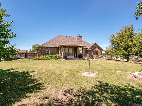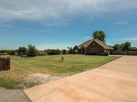Well maintained spacious HOME on .91 acres. Large open living area with 10' ceilings. Split 4 bedroom floor plan, attached side entry garage. Private master suite with large walk in closet. New roof in 2019, owned security system, pull out vent hoot. Privacy & chain linked fenced yard, storage building, a carport perfect to store your boat for nearby Skiatook Lake, in ground storm shelter. Property extends E past the fence aprox to the phone box. Beautiful private covered patio perfect for relaxation.