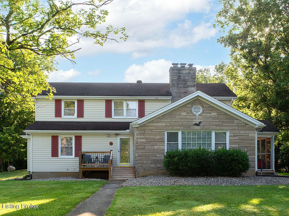Looking for the perfect home in Jefferson County with some land? Look no further! Welcome to 5801 Taylorsville Lake Road. As you enter, you are greeted by an open foyer which leads into a staircase that goes upstairs. To the right is the dining room. The dining room can fit a large table - a perfect place to enjoy holiday meals with family! A great feature of this home is the real hardwood floors throughout the entire house. As you walk into the kitchen from the dining area, you see a large amount of counter and cabinet space. It also has an island with room for bar chairs on the other side. Perfect for informal meals or eating breakfast! The island is able to be moved around to create 2 person seating, 4 person seating, or to maximize space for all your kitchen needs! Off the kitchen is an adorable sun room. It stays cool in the summer and warm in the winter. A great place to sit and enjoy the views of this property year around! Connected to the kitchen is a den that can be used for a home office or additional sitting room. The first floor has several closets, providing several spaces for storage! On the first floor, you will also find the primary suite, which has 2 closets. The first full bathroom is directly next to the primary suite. The large family room has so much natural light and is the perfect gathering space! Off the family room, there is a screen that has enough room for a cozy porch swing. Couldn't think of a better way to enjoy your summer nights! Upstairs there are 3 large bedrooms. Each bedroom has 2 closets, along with a closet in the hallway. Upstairs there is also a full bathroom with a bathtub and linen closet. This home has an unfinished basement where you will find the laundry room and a 2nd-carriage attached garage. The basement has multiple places for storage. On this 5 acre property sits a huge barn with an upstairs loft. It's a great workshop or place to store additional cars! This home has the amazing potential to be your personal oasis while staying in Jefferson County! It is located less than half a mile from the Spencer County line. Do not miss out on this one!