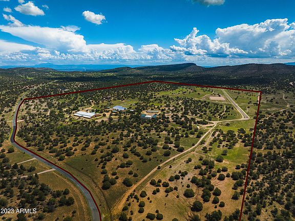 Impressive, Western living. This 210-acre turn-key equestrian center is surrounded by stunning views and includes an abundance of amenities. Experience the serenity of private country living with all the comforts of a luxury lifestyle. This country estate boasts breathtaking views, plenty of room for riding and total privacy. Bordered on 2 sides by state land, creating the ultimate piece of paradise. Ranch includes multiple buildings, landing strip and wells - doc. tab includes features list for each structure. Property booklet available upon request. Complete information for entire ranch property is not provided in MLS fields. Most information is for main home only. Most of this property sits outside of the HOA, with only 50.78 acres of vacant land being included.