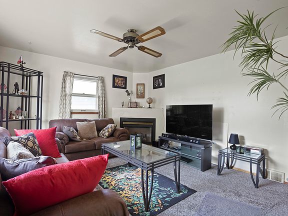 Great 3 bedroom ranch in an excellent location close to schools, shopping and parks. Fireplace in living room, eat in kitchen includes the appliances and overlooks the large fenced yard with gazebo. Basement rec room with 2nd fireplace and 3/4 bath. Basement has cement floors. Brand new roof coming in October.Newer furnace. Newer carpet. Wood floors under carpet per seller.