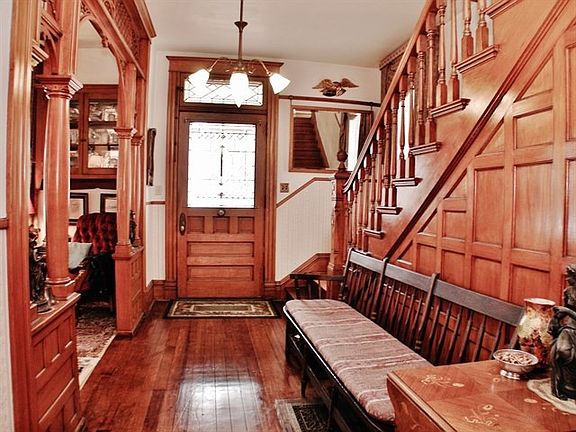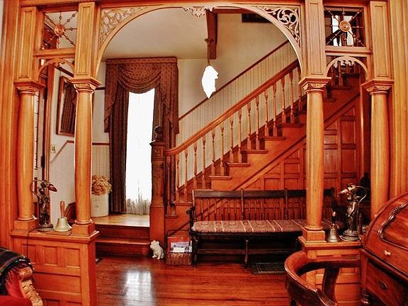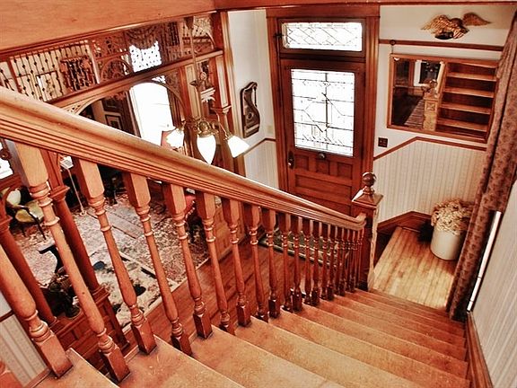 1890's Emmett Covell Victorian Queen Anne on over 5 acres w/endless views of wooded backyard and Creek! Aspen and maple floors and high profile molding throughout. Foyer with maple and oak staircase, Office with pillar entry and pocket door to bayed living room with coal fireplace! Dining room with chandelier and walk-in pantry. Kitchen opens to 3 Season Rm with views of backyard. Bayed Master with wide plank hardwood and full bath with tile floors, double sinks and marble tub/shower combo. Additional bedrooms w/bayed sitting rm and full bath. So much history and character throughout the entire home! Amazing opportunity to own a Victorian home in Richmond, just steps from town!