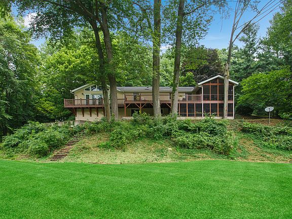 Fantastic house in Chikaming Township sits on a hill that offers privacy and tranquility on 3.56 acres with views of the Galien River meandering through the property. A walking bridge extends to the other side of the land and woods. This exceptional home boasts 4 bedrooms with a Master Bedroom Suite designed by John Allegretti that overlooks the scenic backyard views. The Master Suite also offers radiant heat in the floors, two walk-in closets, a Master Bath with separate tub and shower. Other features include a walkway from the Master Bedroom to the large open deck. The living room welcomes a screened-in porch for extended gatherings and a perfect spot to kick up your feet and enjoy your morning coffee while listening to nature or enjoying your evening drink. The kitchen is open to the informal dining room and living room. The finished lower level offers a family room and walkout to a second screened-in porch with large deck, both levels overlook the picturesque back yard.